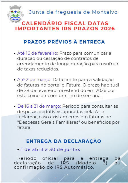 Na qualidade de Presidente da Junta de Freguesia de Montalvo convido a todos a participar ativamente nas atividades e desafios da freguesia, porque juntos, podemos fazer a diferença: “Montalvo: Terra que inspira e lugar que acolhe”.
